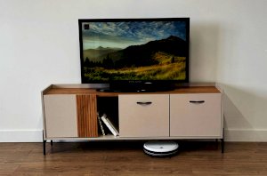 Стильные металлические ручки придают тумбе современный и модный вид. Открытая ниша обеспечивает легкий доступ к вещам, которые вы используете часто, или может служить пространством для размещения медиа-устройств.